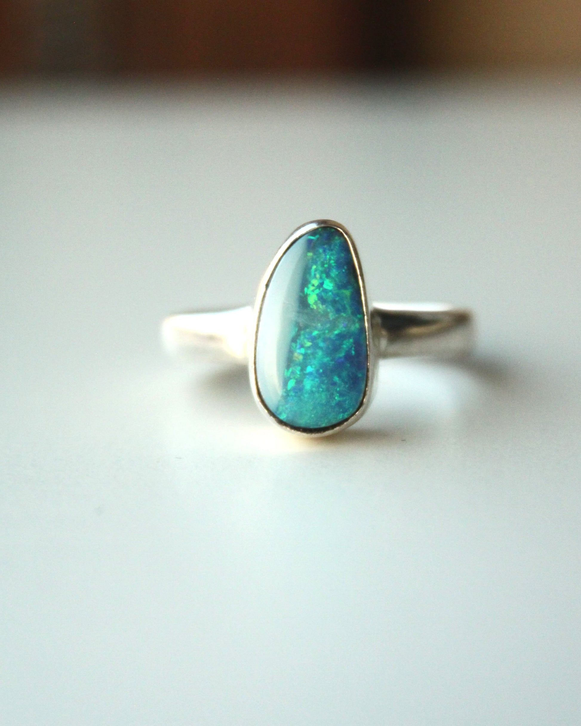 Anello realizzato a mano in argento 925 e opale australiano naturale (doppietta)