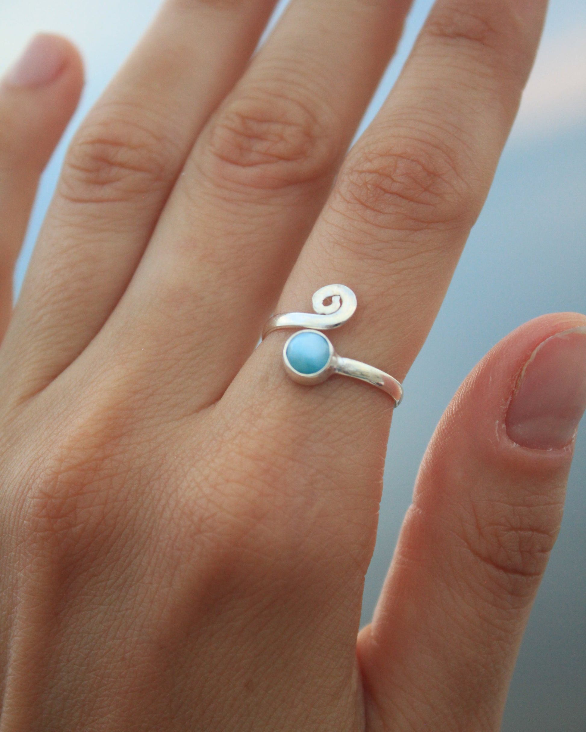 Un anello elegante e simbolico, con un ricciolo che sembra una onda del mare, pensato per accompagnarti ogni giorno o durante i tuoi rituali.