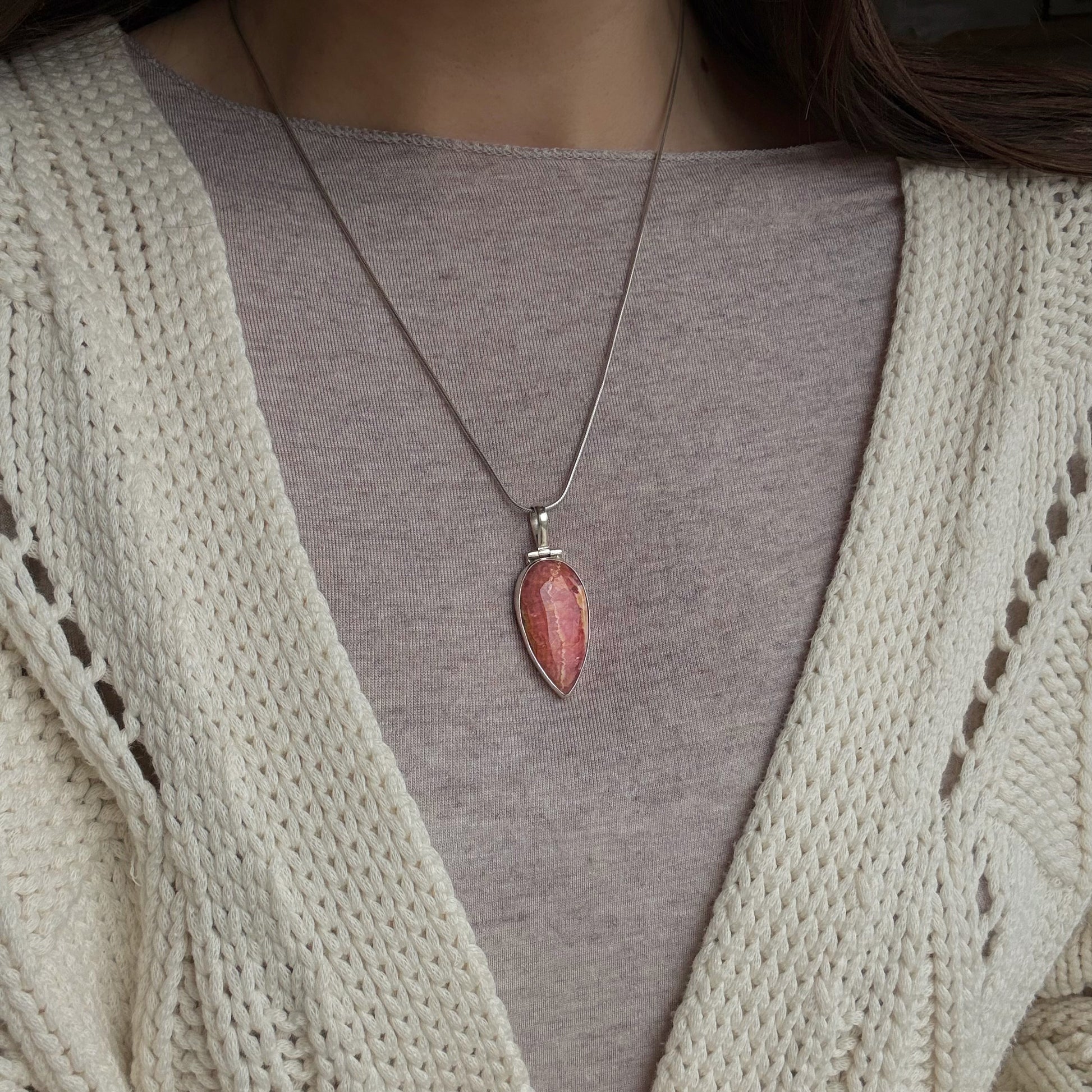 Il ciondolo in rodocrosite nasce come talismano del cuore: una presenza delicata ma profonda, pensata per accompagnare momenti di trasformazione emotiva, cura e rinascita interiore.