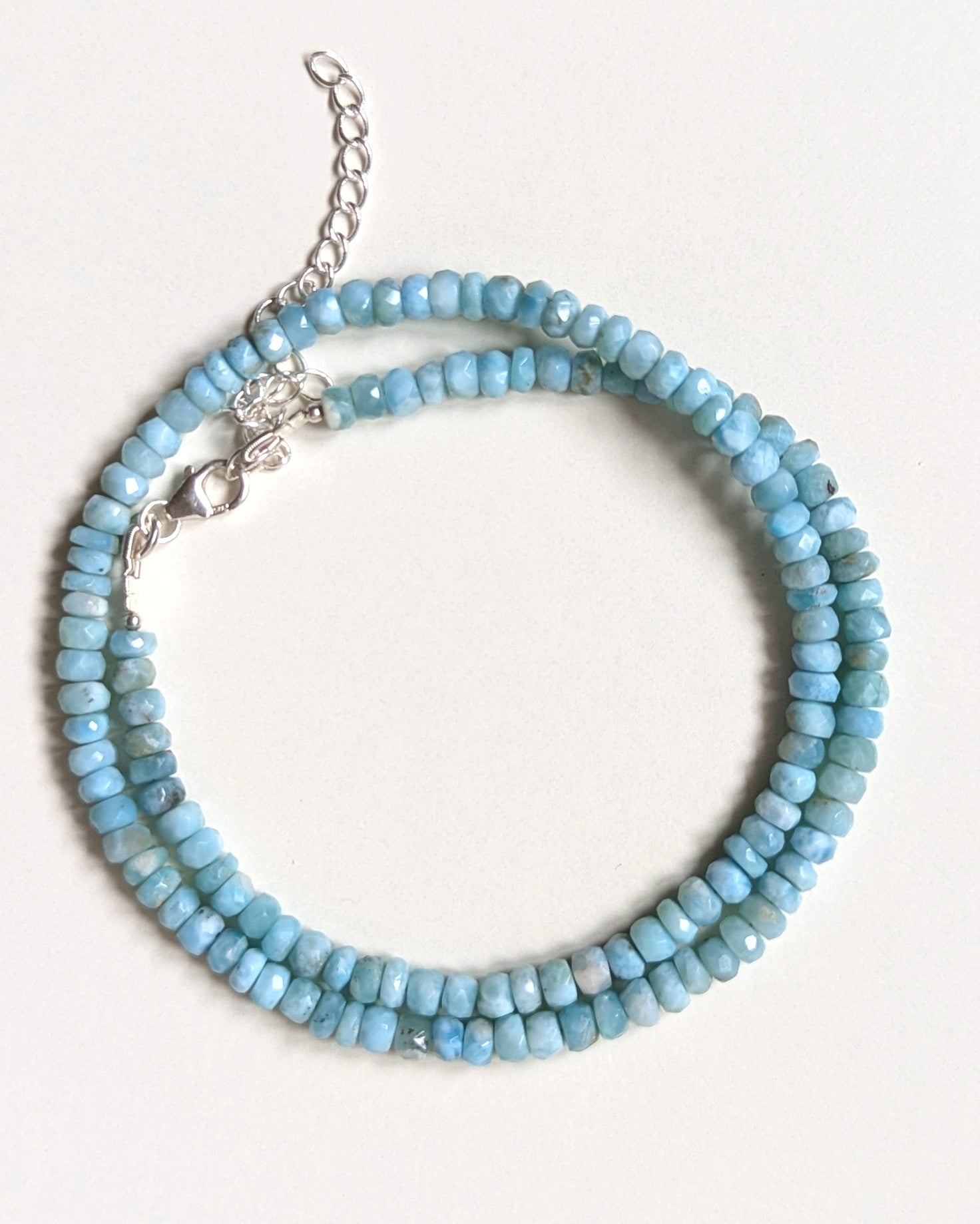 materiali: Larimar naturale, chiusura in argento 925 e filo interno in acciaio inox.