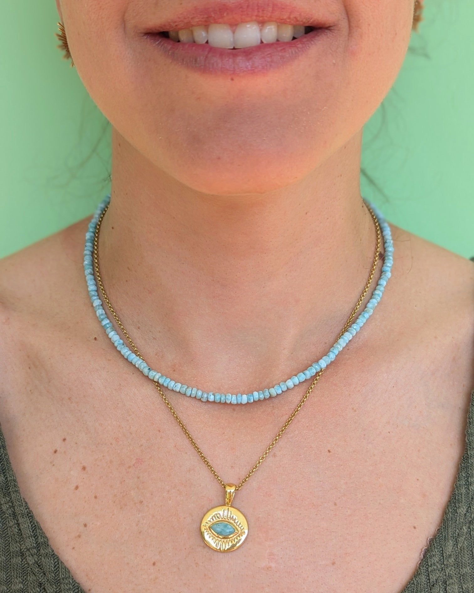 Collanina modello choker realizzata a mano con perline di Larimar.