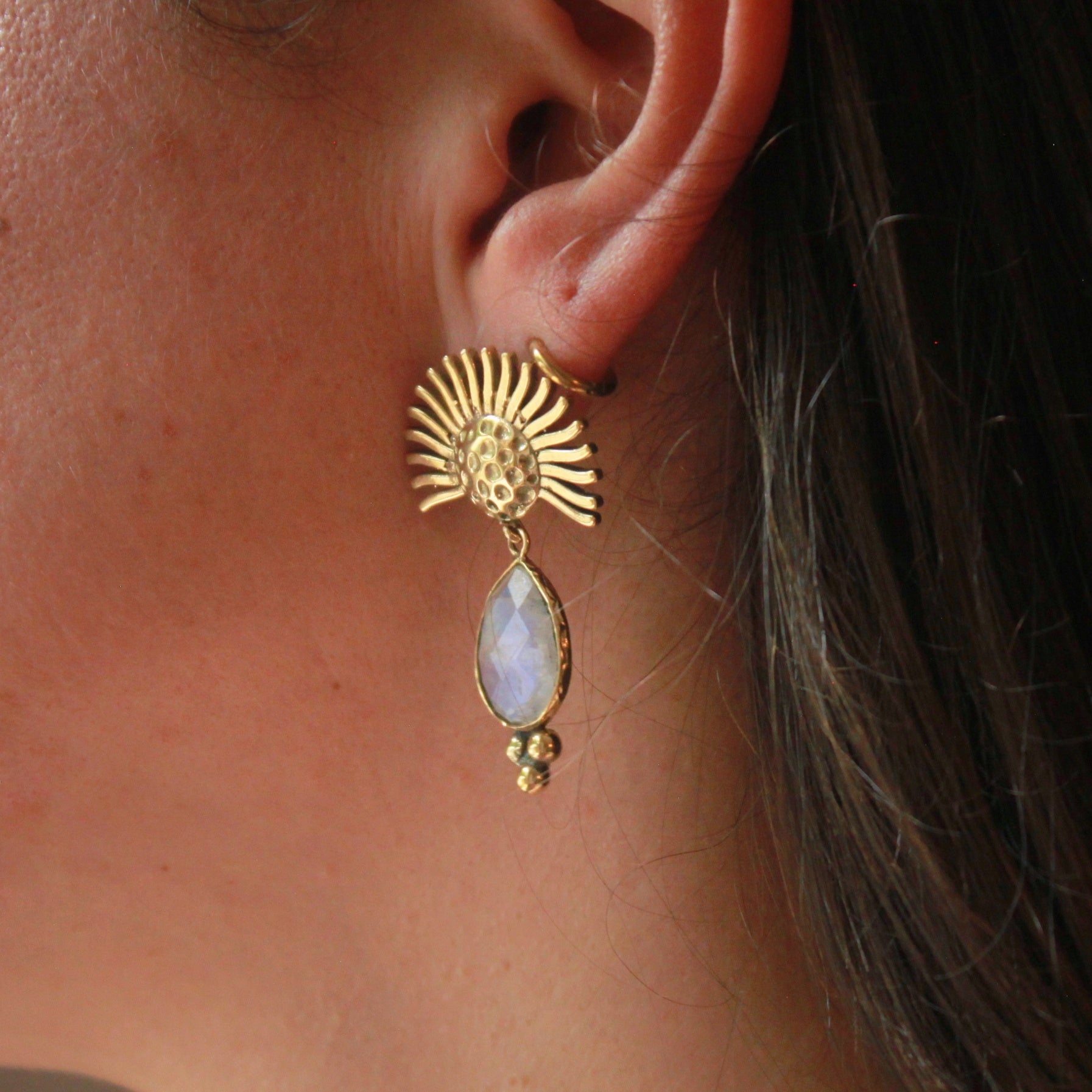 Gli orecchini Numina sono un omaggio alle forze invisibili che abitano ogni cosa.Un sole scolpito, piccolo ma intenso, si posa sul lobo come una scintilla divina.